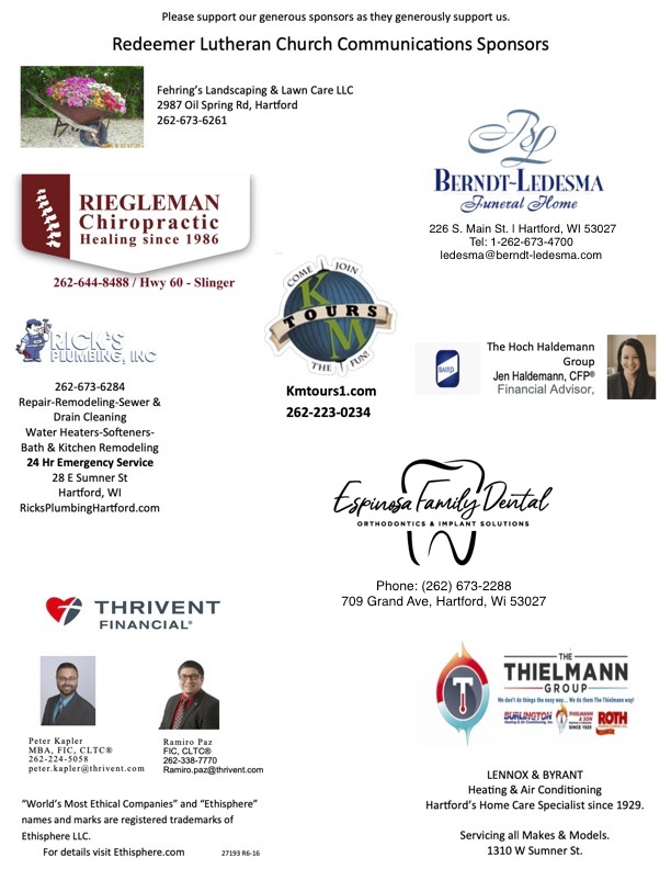 These businesses support Redeemer’s radio broadcasts on WTKM, our website, and our newsletter.